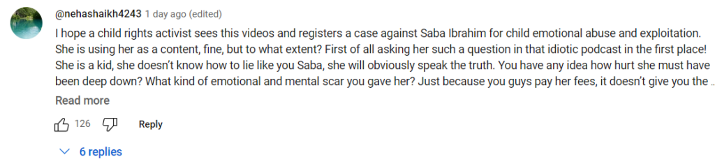 Netizens are slamming Saba Ibrahim for revealing these sensitive information about the child on internet and some believe that this can lead to bullying and harassment of her in school. Saba is facing a lot of heat for the some.