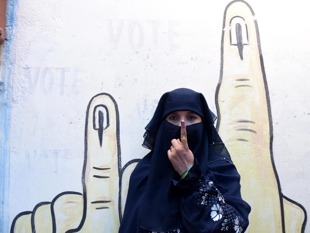 Patna: A voter shows her finger marked with indelible ink after casting her vote during the seventh and last phase of Lok Sabha elections, in Patna, Saturday, June 1, 2024. (PTI Photo)