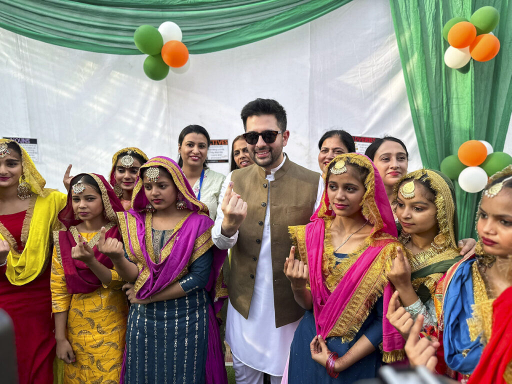 Nagar: AAP leader Raghav Chadha show his inked finger after casting his vote at a polling booth during the seventh and last phase of Lok Sabha elections, in Sahibzada Ajit Singh Nagar, Saturday, June 1, 2024. (PTI Photo)