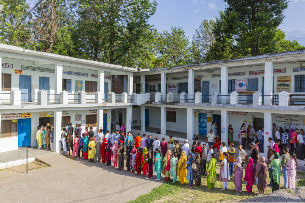 Palampur: People wait in a queue to cast their votes at a polling station during the seventh and last phase of Lok Sabha elections, at Ghugar, near Palampur, Saturday, June 1, 2024. (PTI Photo)