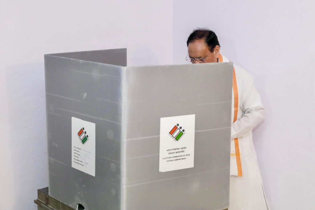Bilaspur: BJP leader J.P. Nadda casts his vote at a polling booth during the seventh and last phase of Lok Sabha elections, at Vijaypur in Bilaspur district, Saturday, June 1, 2024. (PTI Photo)