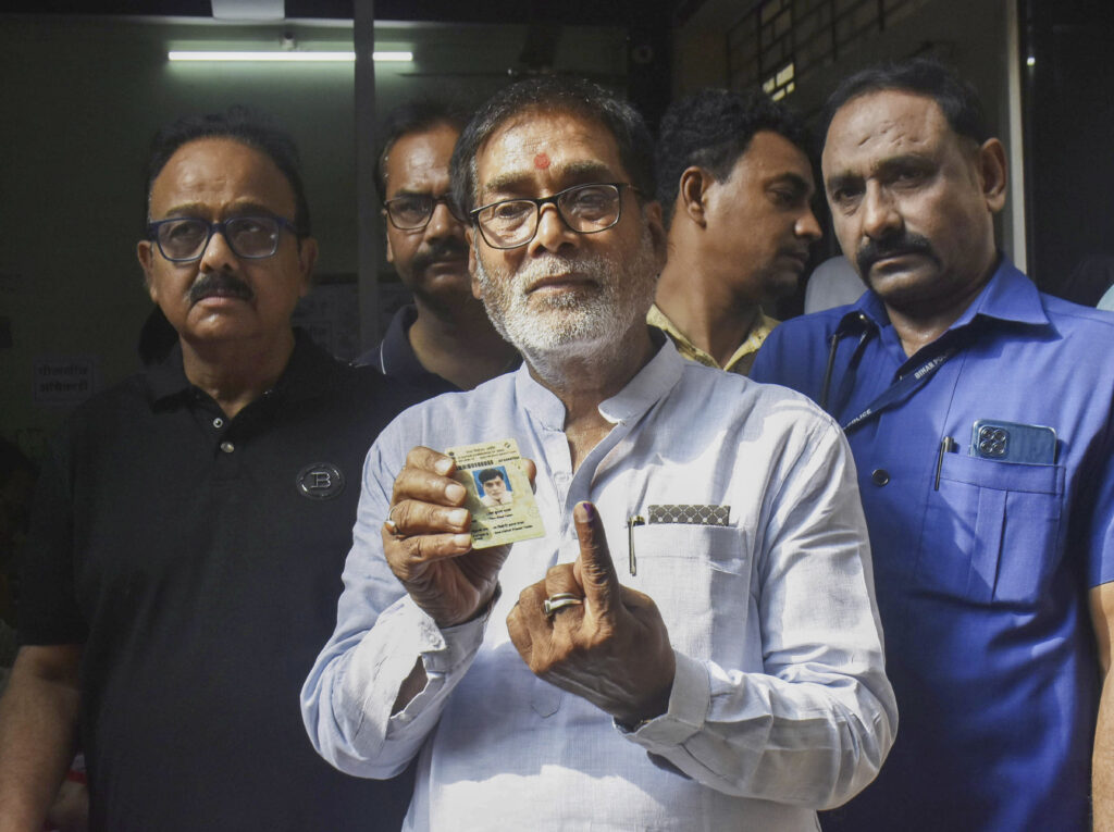 Patna: BJP candidate Ram Kripal Yadav shows his finger marked with indelible ink after casting his vote during the seventh and last phase of Lok Sabha elections, in Patna, Saturday, June 1, 2024. (PTI Photo)