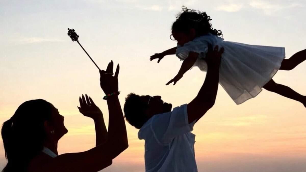 Alia’s latest post on Instagram is a photo of her dressed like a fairy godmother in a white dress, with a wand in her hand, while Ranbir is holding little Raha in the air.