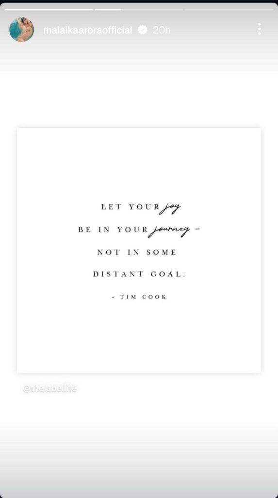 Just hours before Arjun’s announcement, Malaika shared a post about finding “joy in the journey” rather than in “distant goals.” Although she didn’t directly address the breakup, fans felt it might have been her way of reflecting on this big change.