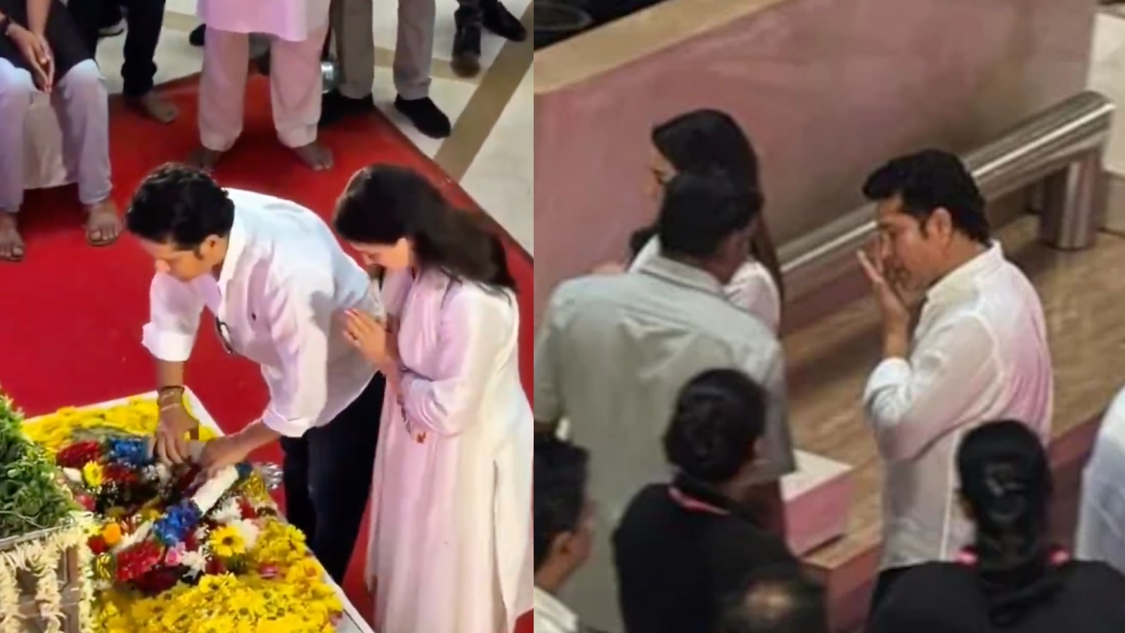 Cricket legend Sachin Tendulkar also visited Asha Bhosle’s residence to pay his last respects, accompanied by his wife Anjali. The moment became deeply emotional as Sachin was seen wiping away tears while speaking with her family.