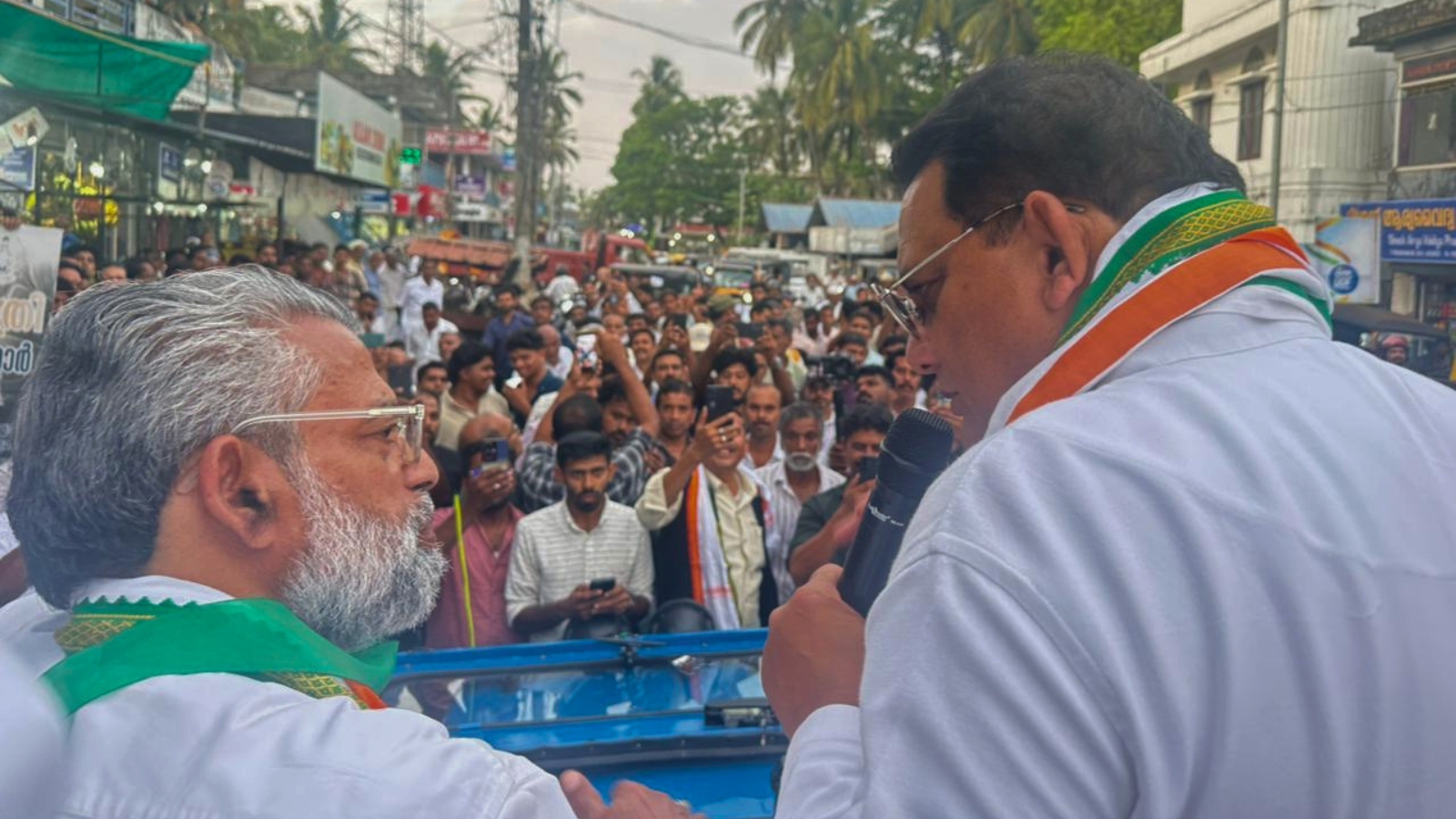 The tone shifted to a packed public meeting in Tirur, where Azharuddin drew repeated cheers and laughter with a speech built almost entirely around cricket analogies. Opening with a “Namaskaram” to the crowd, he told the gathering it felt less like a political rally and more like a “huge cricket stadium.”