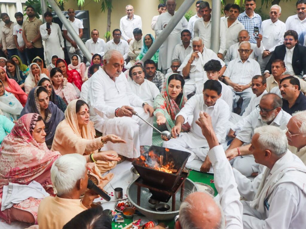 Former Haryana chief minister Hooda was accompanied by his wife Asha Hooda, son Deepender Hooda and daughter-in-law Sweta Hooda.