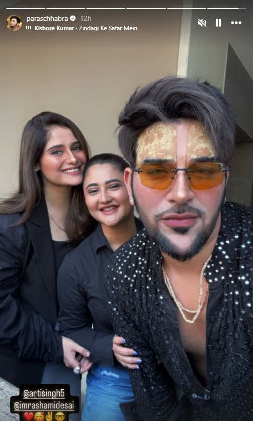 Paras took to the Stories section of his Instagram handle and dropped a selfie with Rashami and Arti, twinning in black.
