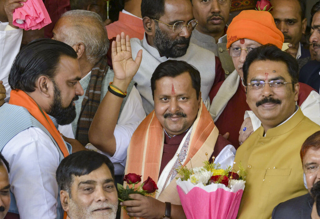 Members of the BJP, which is now the single largest party in the House, raised slogans like ‘Jai Shri Ram’ and ‘Bharat Mata Ki Jai’ to greet the Bankipur MLA.