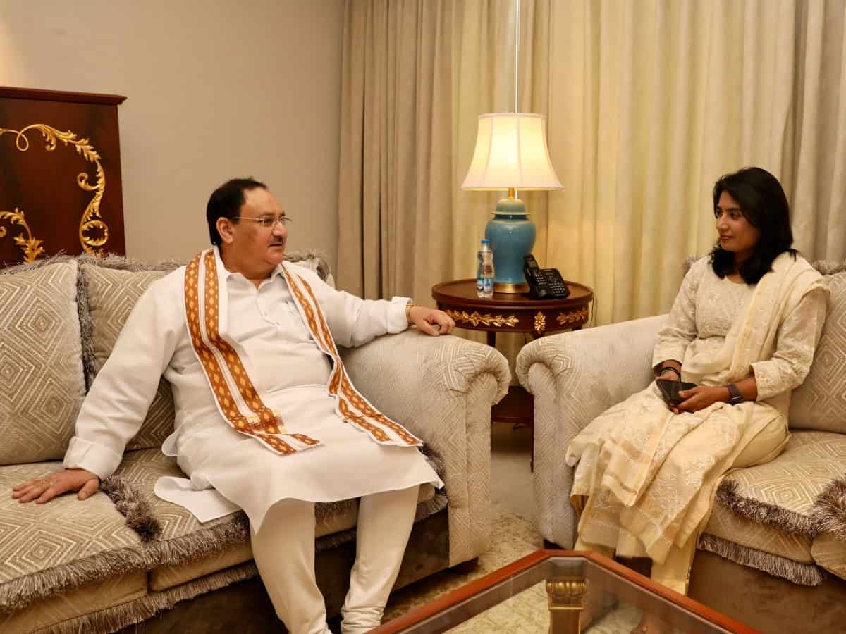 Hyderabad: Bharatiya Janata Party (BJP) National president Jagat Prakash Nadda on Saturday met former India women’s cricket captain Mithali Raj in Hyderabad.