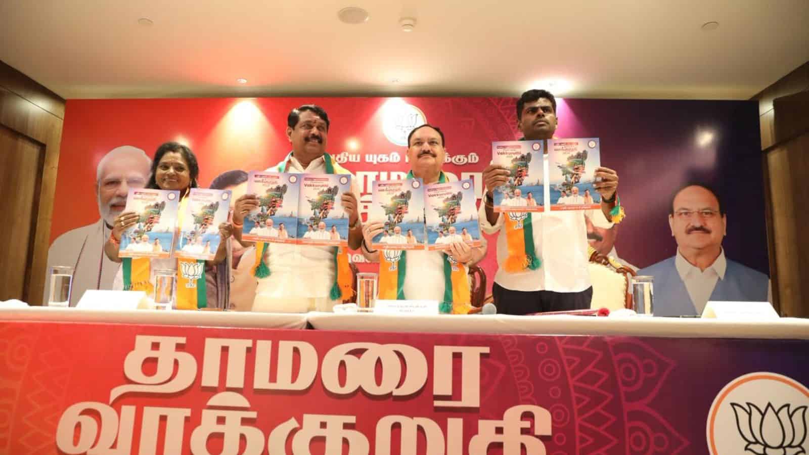 The poll manifesto, prepared by a 13-member committee under former Governor Tamilisai Soundararajan, covers 12 subjects, including governance and law and order, social justice, women and child development, healthcare, and farmers’ welfare.