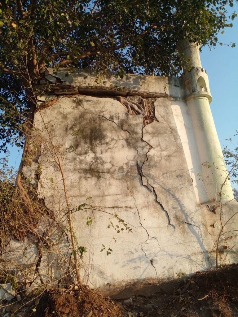 A huge Peepal tree has emerged from the rear wall of the mosque, which poses serious threat to the structural stability of the mosque.
