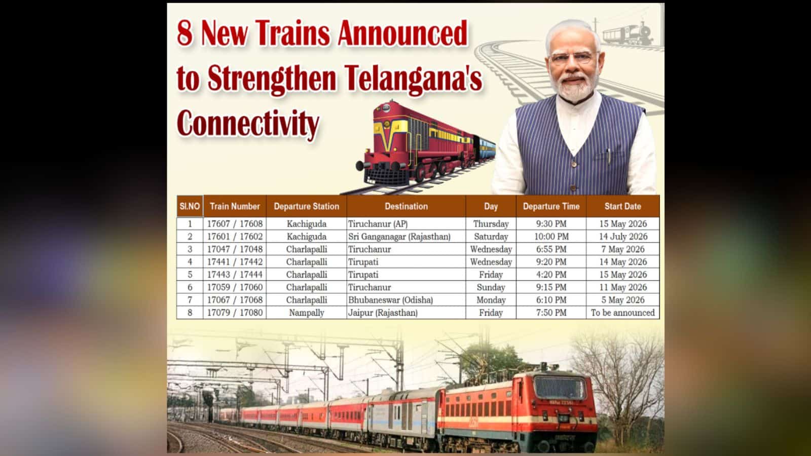 In an X post shared on Tuesday, April 21, Reddy said the special trains are weekly trains which will start from Kachiguda (two trains), Charlapalli (five trains), and Nampally (one train) stations in Hyderabad.