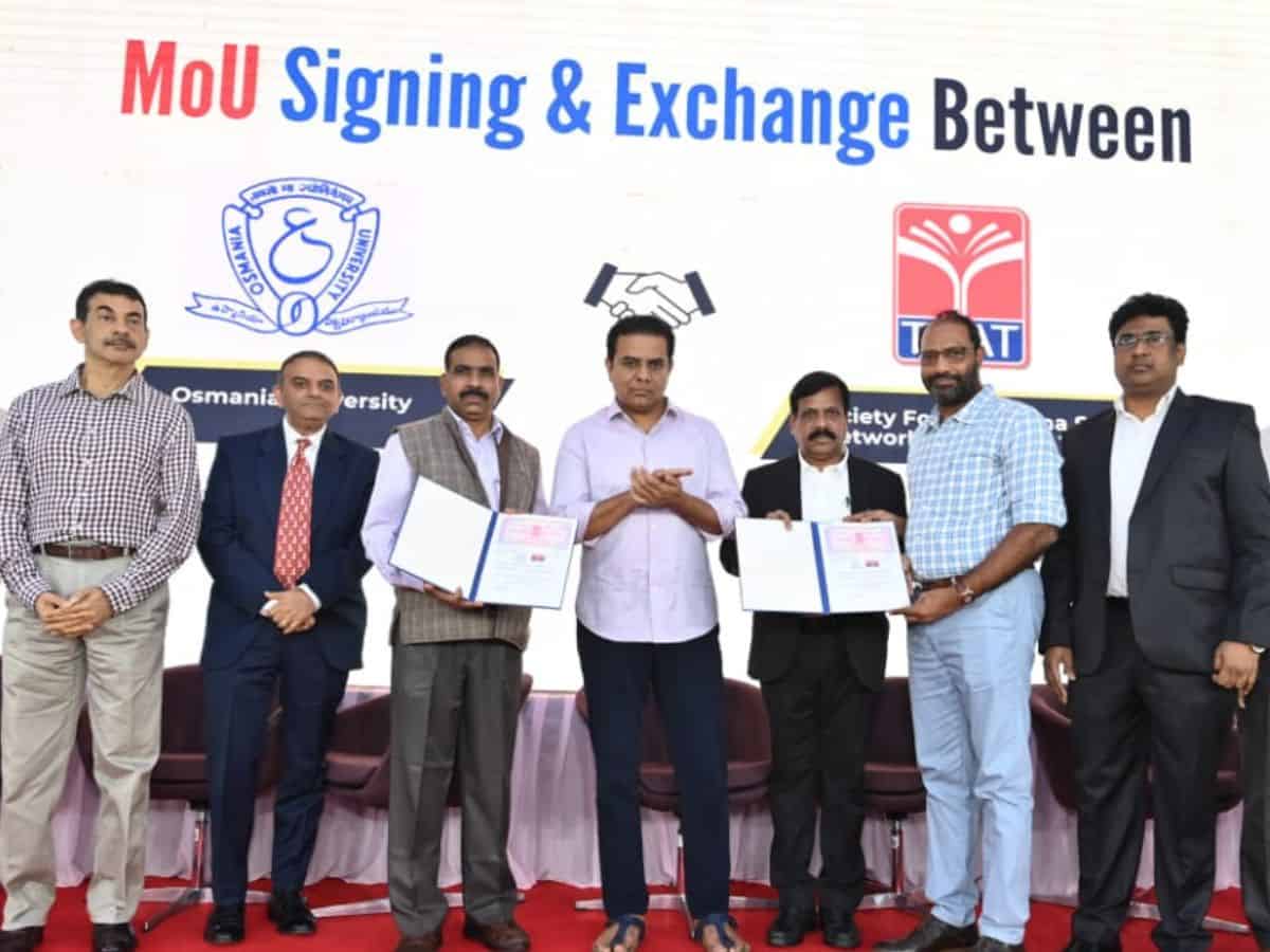 The Minister presided over the exchange of MoU between the Society for Telangana State Network and Osmania University, which marks the launch of the university’s TV channel.