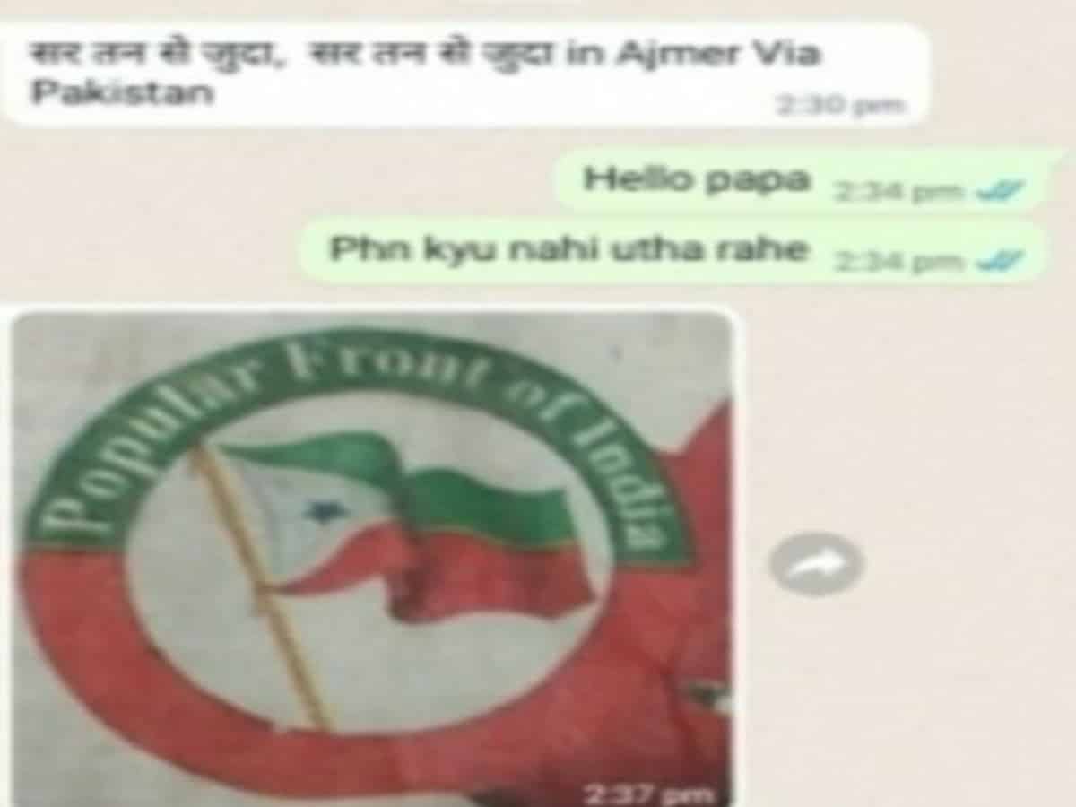 His family received a WhatsApp message which read “Sar tan se Juda Sar tan se Juda in Ajmer via Pakistan.”