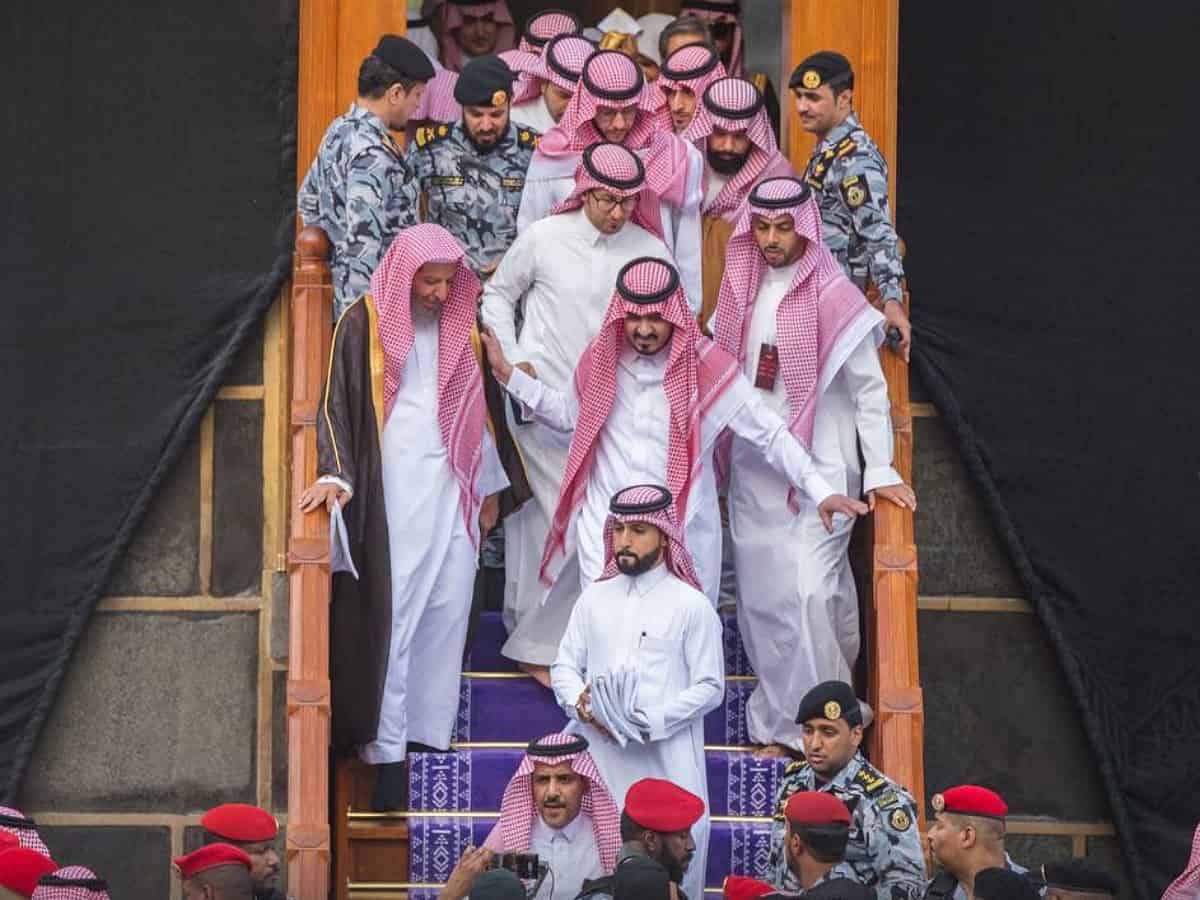 During the ceremony, a staircase is used to access the holy site of Muslims and the gatekeeper of the Kaaba opens the door.