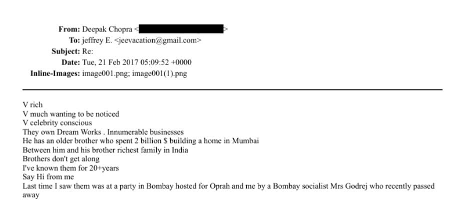 Epstein asked Deepak Chopra’s opinion on Anil Ambani