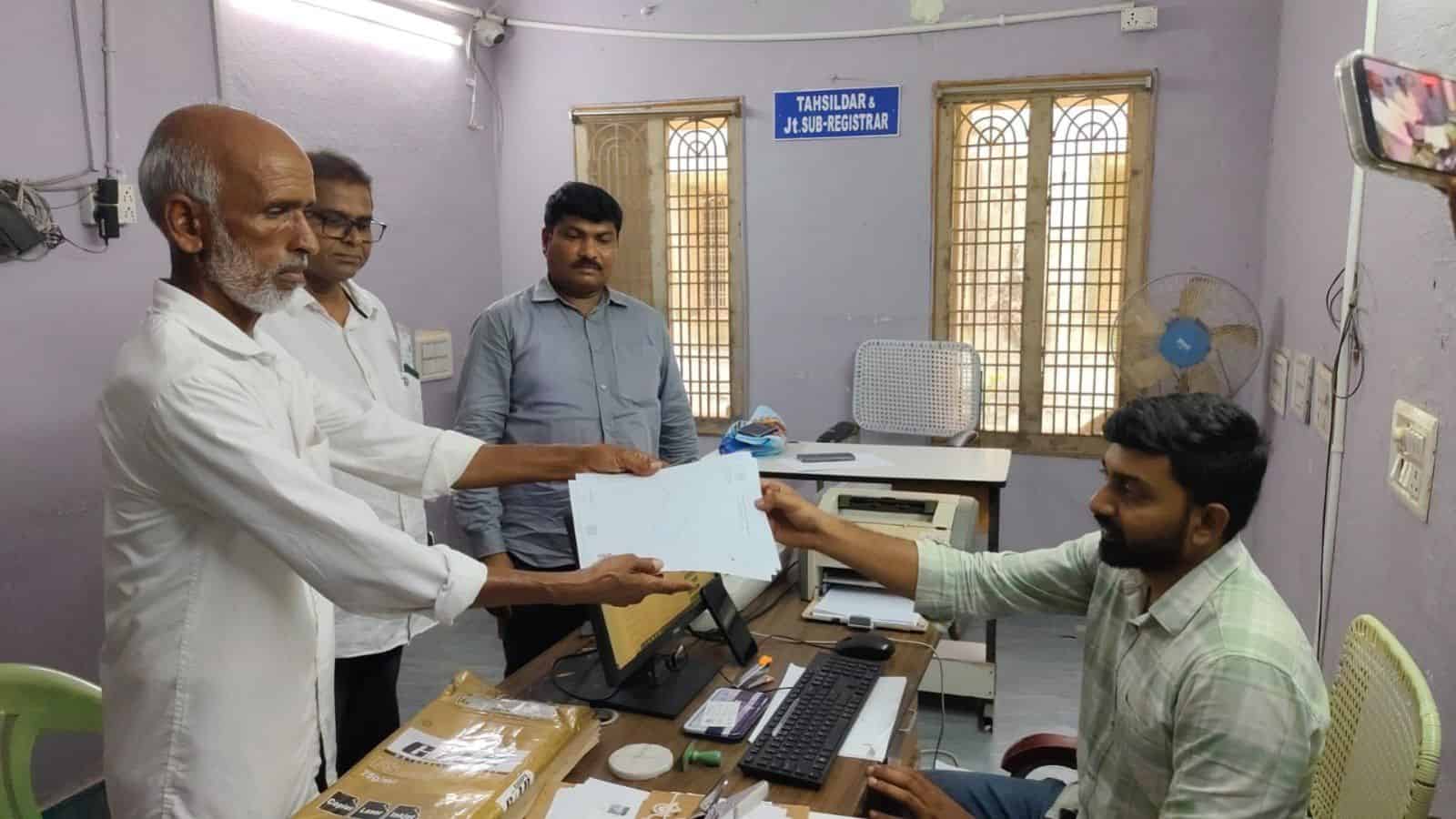 The registration was completed at the Kusumanchi Tahsildar office by attaching a detailed boundary survey map.