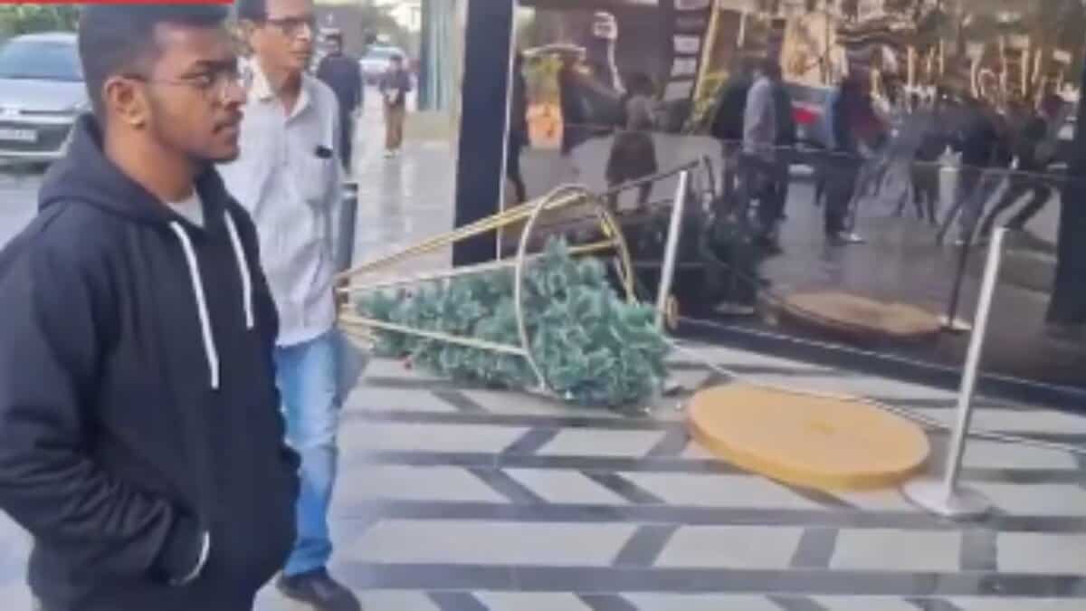Videos circulating on social media showed the men knocking down trees with Christmas decorations in the mall.
