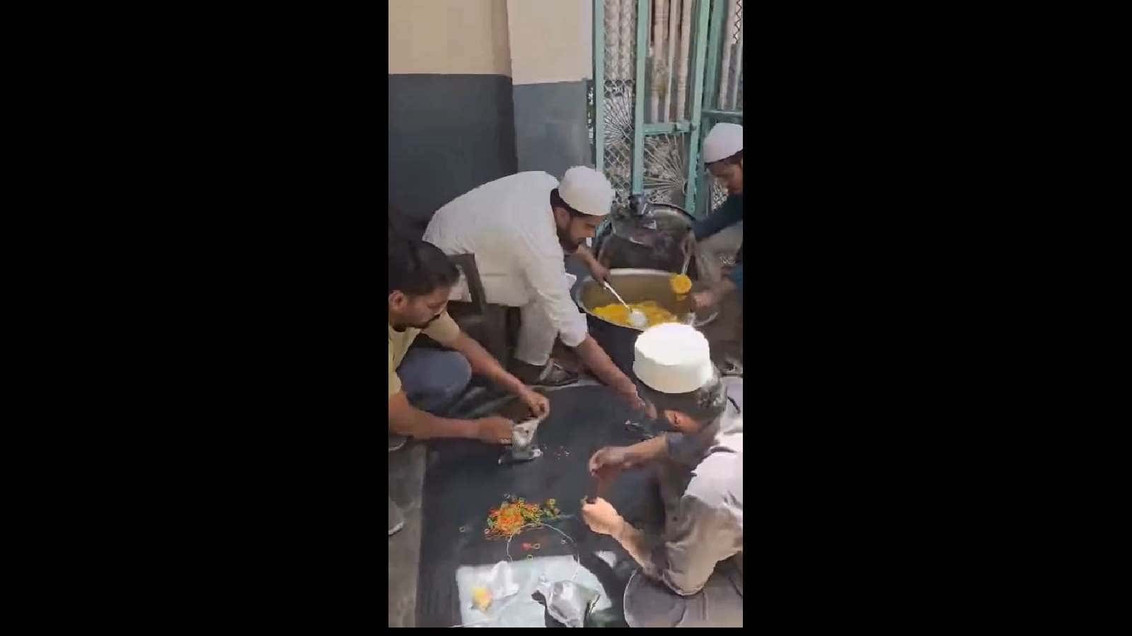 Students from the Madrasa Jamia Darul Huda packed food items for those affected by a fire accident in the Vikas Nagar area of Lucknow. A video shared online shows students and teachers from the madrasa making food packets.