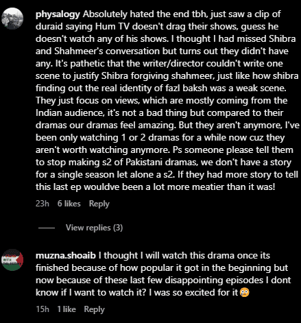 The last episode of ‘Ishq Murshid’ aired on May 5 on YouTube and in theatres on May 3. It has drawn mixed responses, with some social media users expressing satisfaction at the Shibra and Shahmeer’s happy ending, while others slammed the makers for their overall execution. Many criticized the unnecessary recap included in the episode and deemed it as ‘poorly edited’ and ‘ghatiya’.