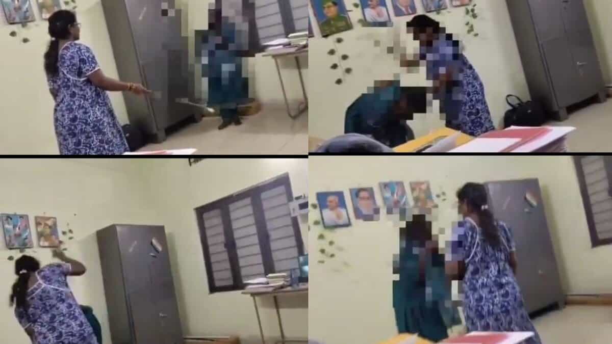 District Collector Rahul Sharma issued a suspension order of R Bhavani after a video emerged of her indiscriminately beating the student with her hands and sticks, even as the latter pleads with her to stop.