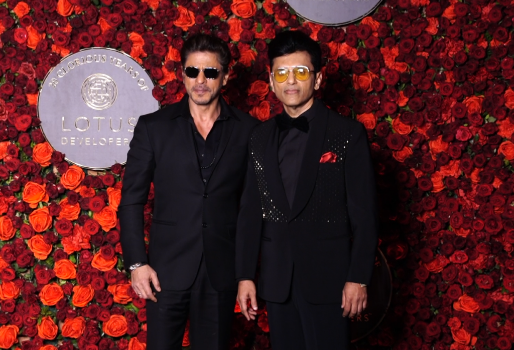 SRK looked handsome as he donned an all-black suit at the party. He tied his hair into a ponytail and completed his look with black shades.