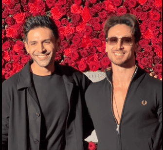 Actors Kartik Aaryan and Tiger Shroff were seen twinning in casual black attires at the bash.