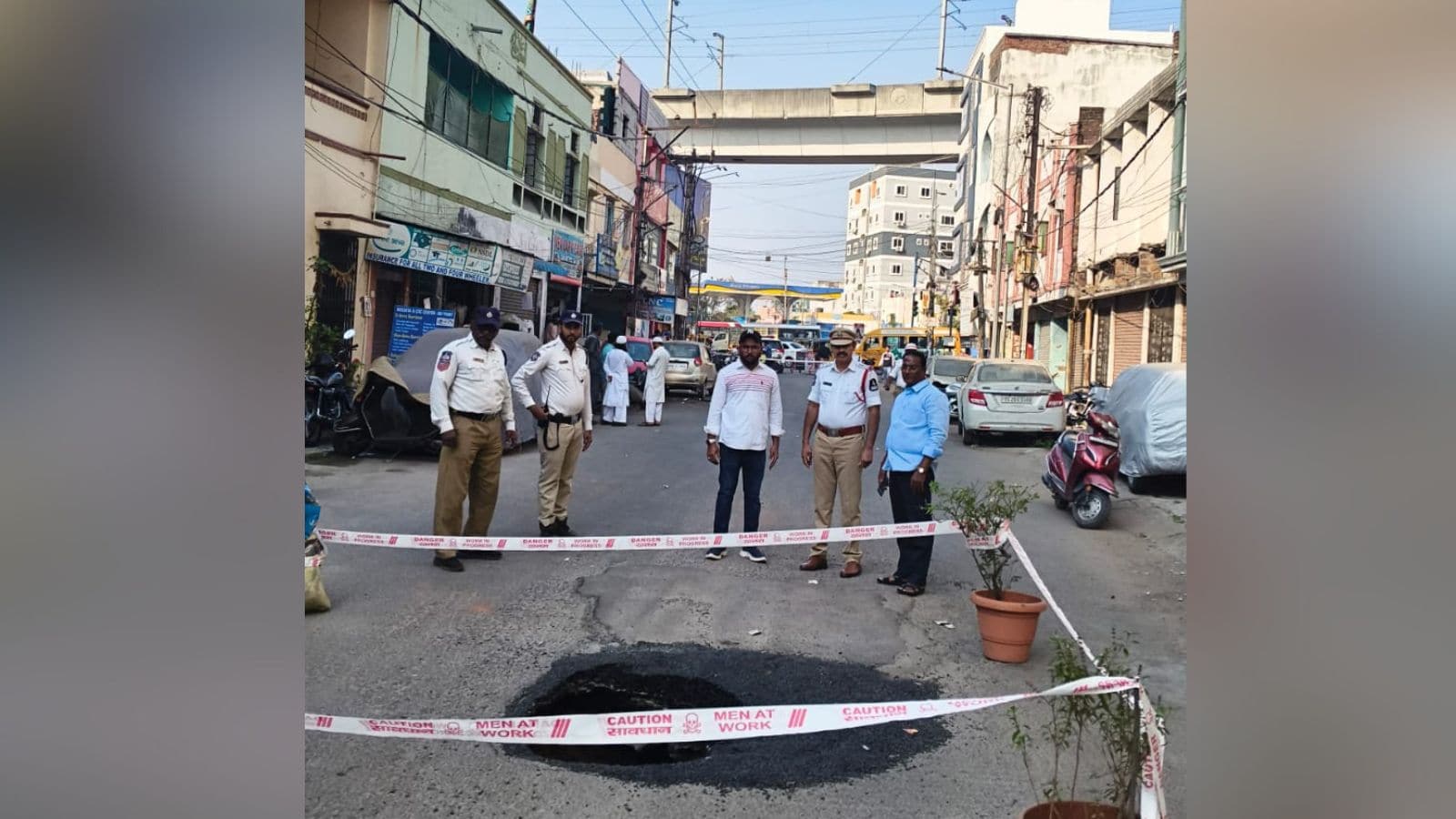 Acting swiftly, Dabeerpura Police and Malakpet Traffic Police immediately reached the spot and placed safety barriers around the pit, preventing a possible major accident and ensuring commuter safety.