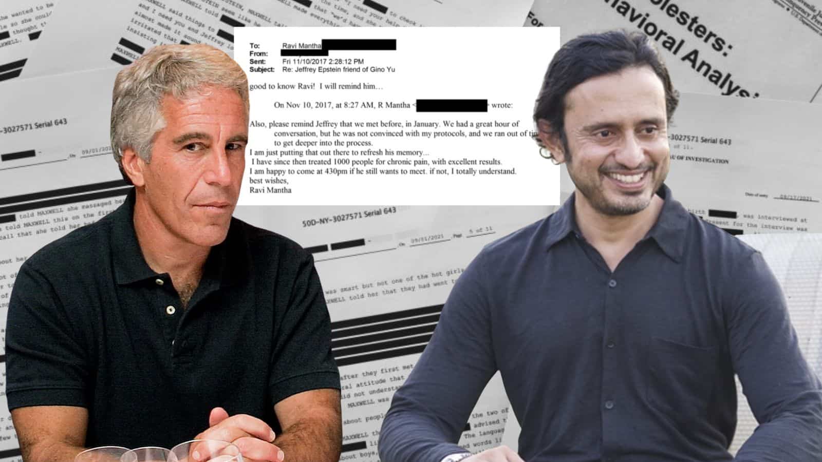Emails show that on January 11, 2017, Yu introduces the Indian businessman to Epstein, saying, “Ravi Mantha. He’s developed a healing dality that is amazing. Let me know if you can meet him.” The interactions also show that Mantha was to meet Epstein later as well in New York, but the meeting was seemingly cancelled. The records do not mention any women or anything on the lines of trafficking.