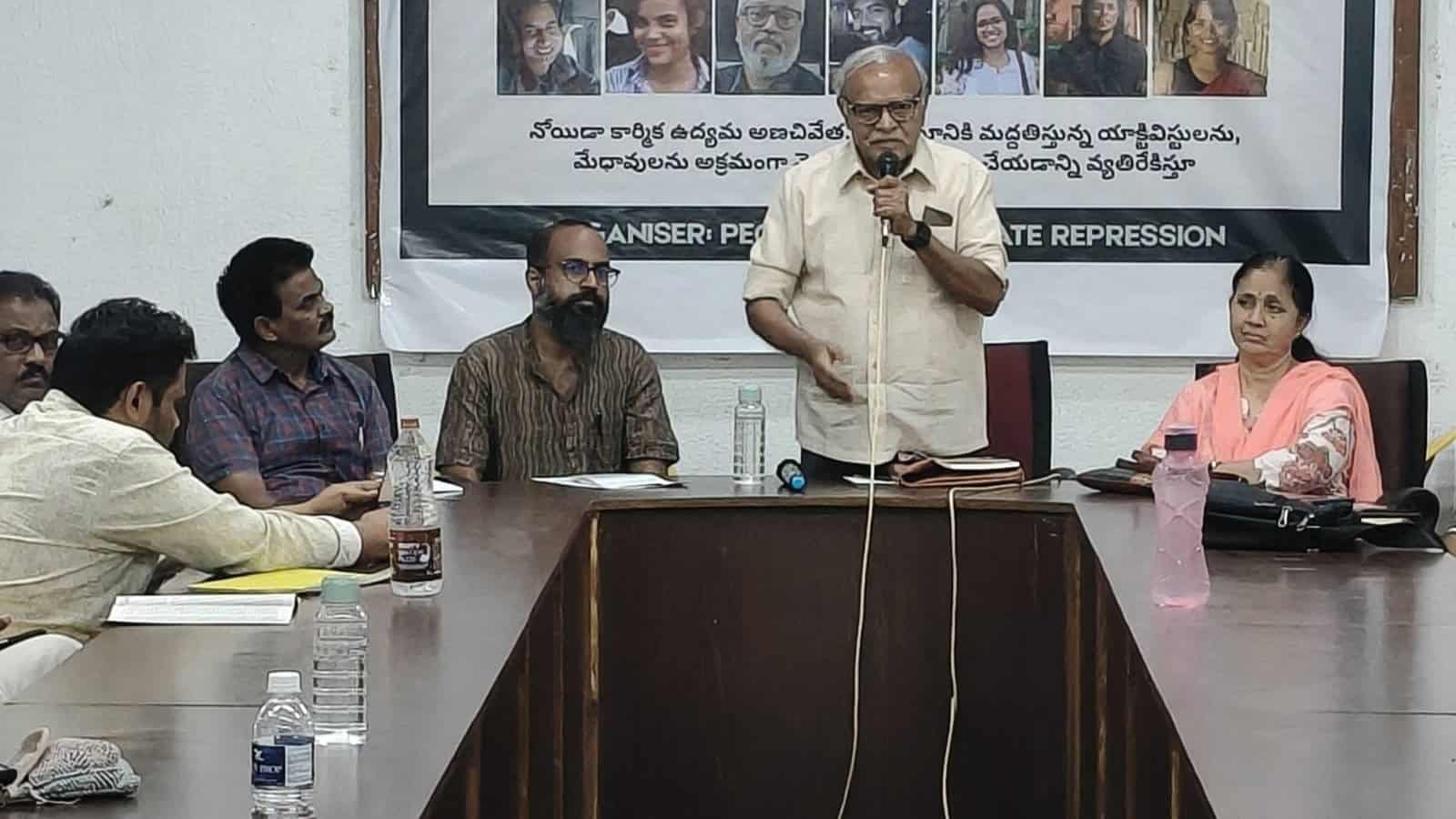 Hyderabad: Trade union leaders and human rights activists in Hyderabad on Saturday, April 25, condemned the Uttar Pradesh government and police over the arrest of several activists, journalists and students in connection with the Noida workers’ protest, demanding their immediate and unconditional release.