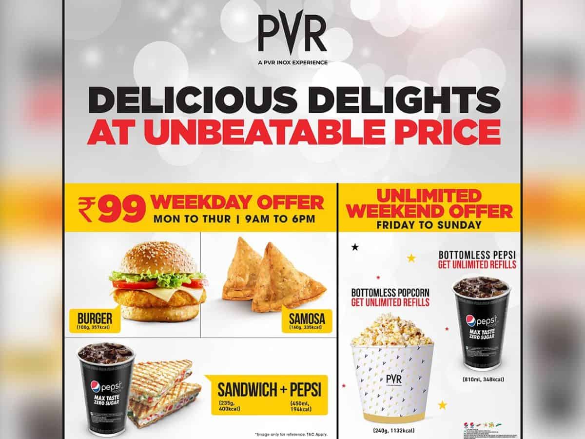 On weekends, Friday to Sunday, PVR has introduced a ‘bottomless’ popcorn and Pepsi offer, where moviegoers can have unlimited refills, on a 240g bucket and 810ml glass.