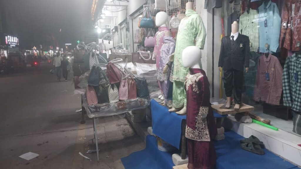 Around 100 shops selling designer clothes, bangles, handbags, purses, cosmetics, men’s and children’s dresses, crockery and home furnishings have stocked up merchandise for the Ramzan festive month when people drop in for Eid shopping.