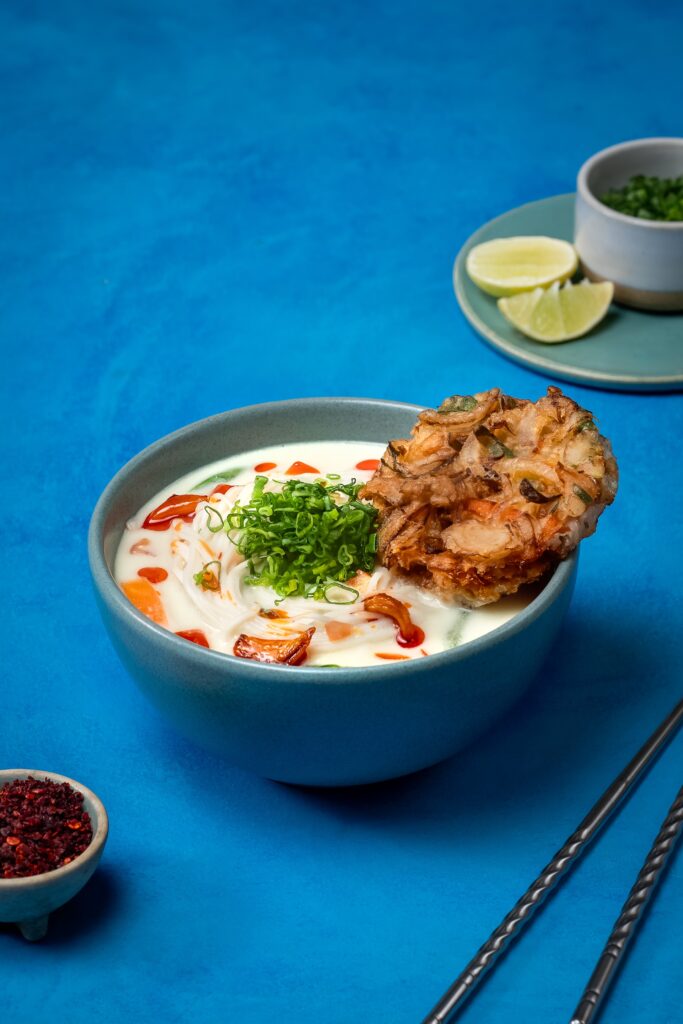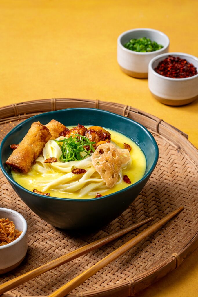While translating to simply “noodles” in Burmese, Khowsuey, at its core, is a bowl of noodles immersed in a silky coconut broth and finished with herbs, aromatics and toppings like birista and peanuts. At Knowledge City’s Burma Burma, this simple dish finds itself expressed in six different shades of comfort and rest assured, there is a bowl for evey palate.