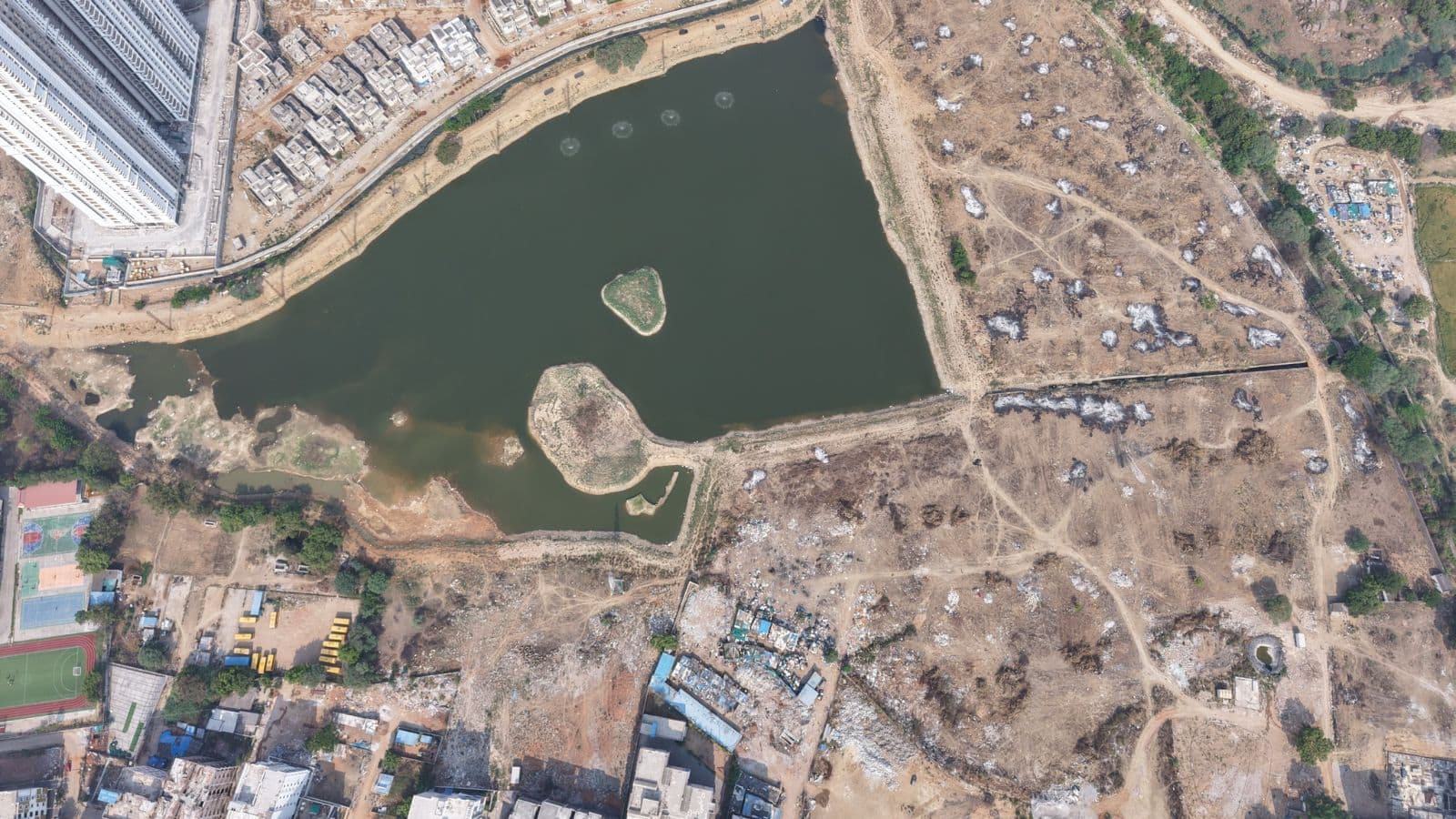 Muskin Cheruvu spans 52 acres, while including the buffer zone, it extends to 62 acres. Within this, a private company is claiming up to 18 acre of land, farmers possess 12 acre while is 4.20 acre is owned by various individuals, said HYDRAA.
