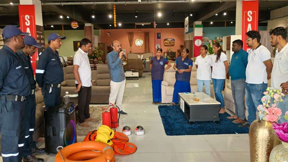 Workers were guided on how to safely evacuate in case of a fire and were instructed to call the Fire Department by dialling 101 and HYDRAA at 1070 and 9000113667.