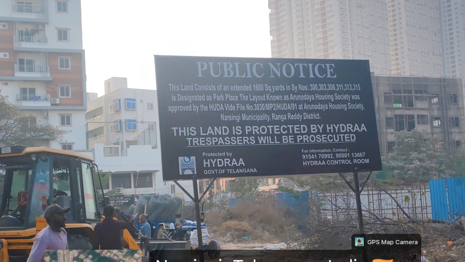 Hyderabad: In yet another land recovery, the Hyderabad Disaster Response and Asset Protection Agency (HYDRAA) reclaimed 3,000 square yards of land (27,000 square feet) worth Rs 60 crore in Narsingi, Ranga Reddy district.