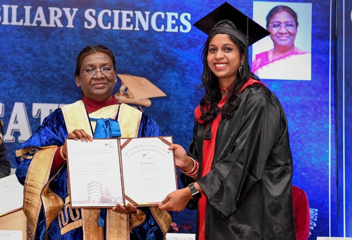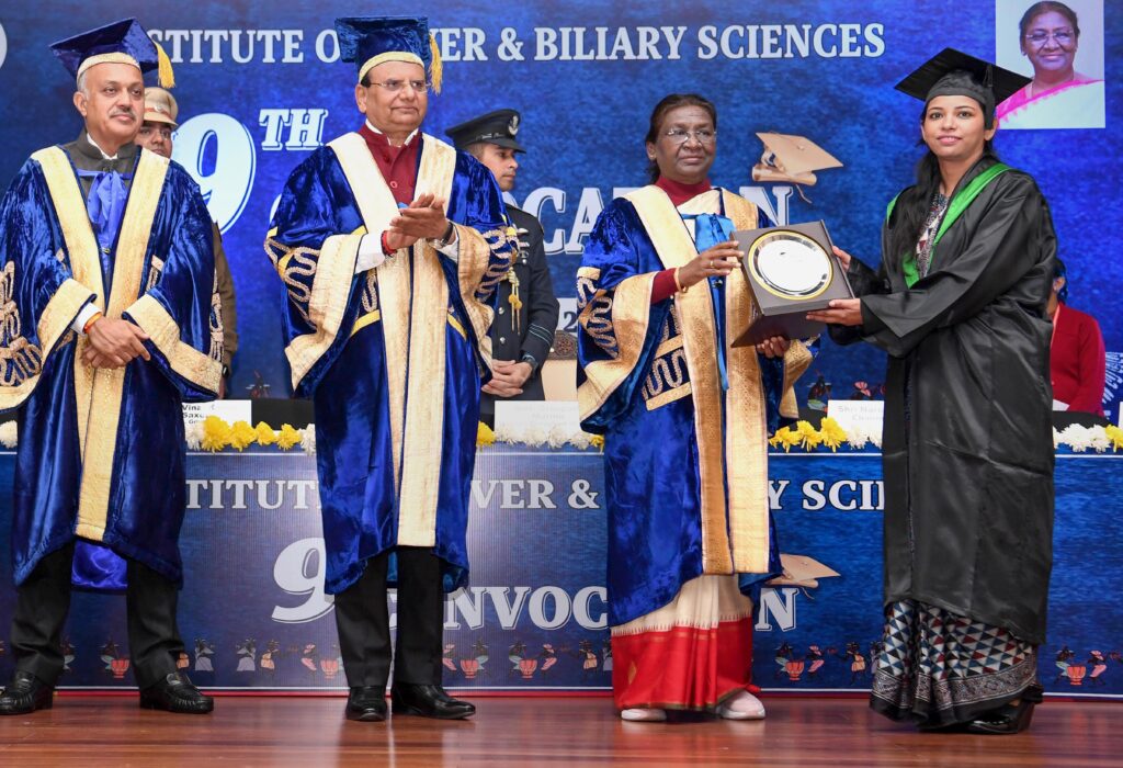 New Delhi: President Droupadi Murmu during the ninth convocation of the Institute of Liver and Biliary Sciences (ILBS), in New Delhi, Wednesday, Dec. 27, 2023. (PTI Photo)(PTI12_27_2023_000132B) New Delhi: President Droupadi Murmu and Delhi LG VK Saxena during the ninth convocation of the Institute of Liver and Biliary Sciences (ILBS), in New Delhi, Wednesday, Dec. 27, 2023. (PTI Photo)(PTI12_27_2023_000124B)New Delhi: President Droupadi Murmu and Delhi LG VK Saxena during the ninth convocation of the Institute of Liver and Biliary Sciences (ILBS), in New Delhi, Wednesday, Dec. 27, 2023. (PTI Photo)(PTI12_27_2023_000122B)