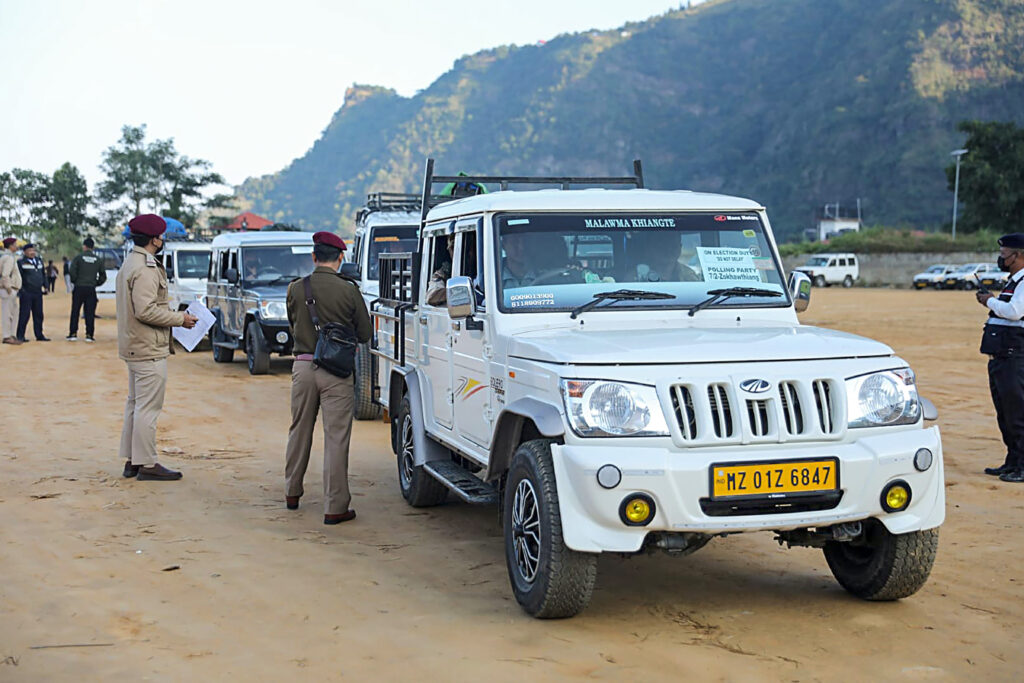 Aizawl: Polling officials with EVMs and other election material leave for poll duty ahead of Mizoram Assembly elections, in Aizawl, Monday, Nov. 6, 2023. (PTI Photo)