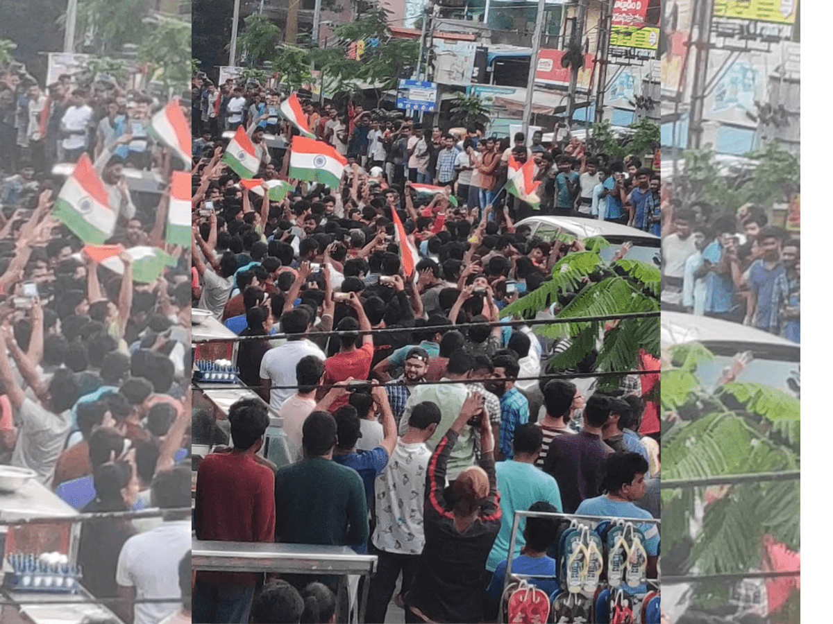Hyderabad: Several cricket fans took to the streets in Hyderabad to celebrate India’s win over Pakistan in a match of the World T20 Tournament on Sunday.