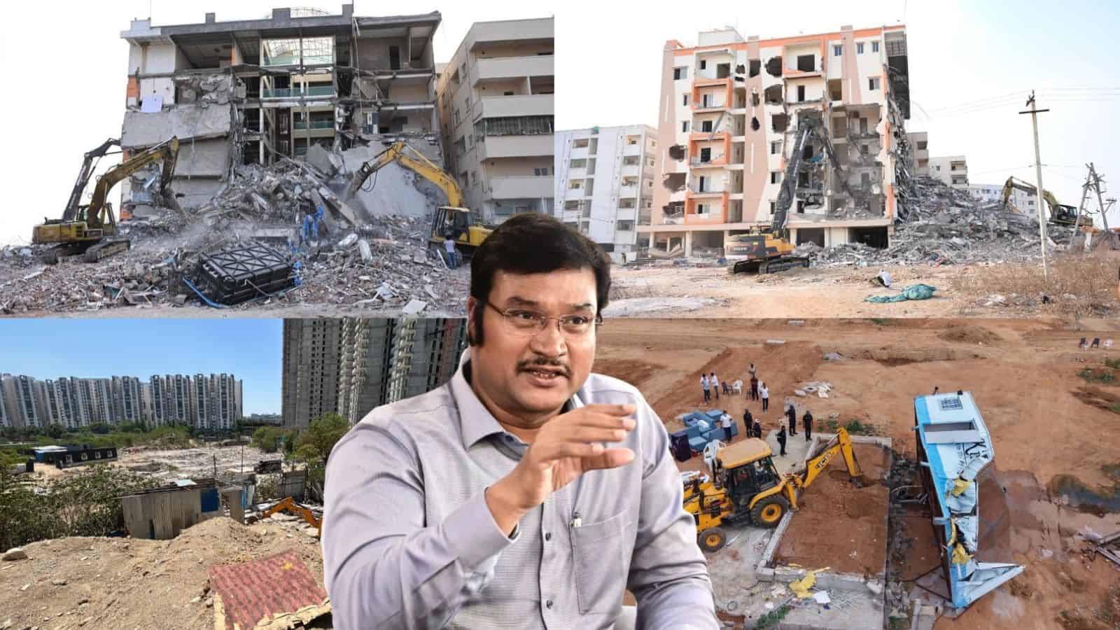 (On April 11 and 12, HYDRAA undertook a massive demolition drive in Ilapuram village and tore down a farmhouse and a six-storey building belonging to lawyer Mukheem and his brother Azim, claiming that the structures were illegally built on government land)