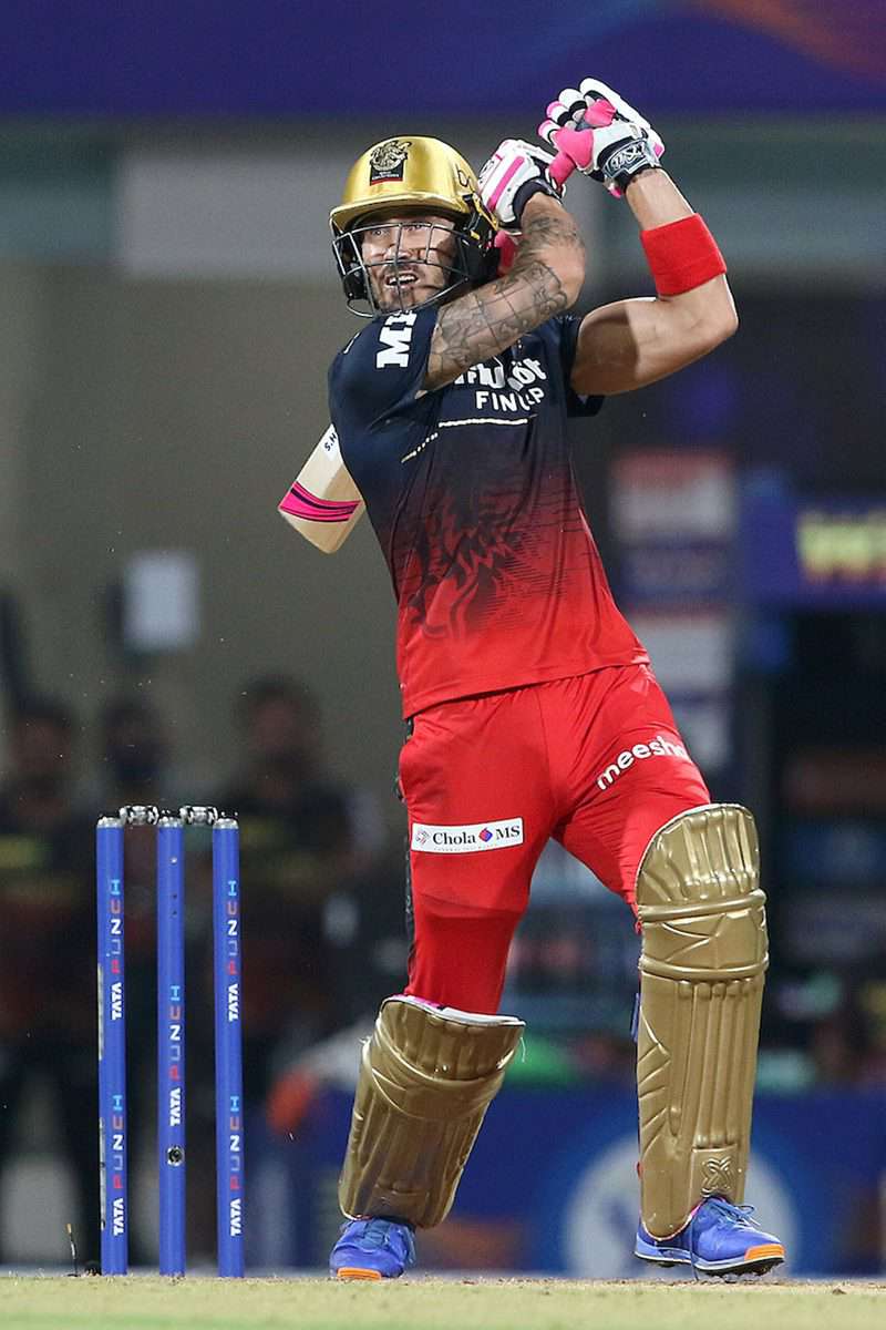 Mumbai: Captain of Royal Challengers Bangalore Faf du Plessis plays a shot, during match 6 of the Indian Premier League 2022 cricket tournament between the Royal Challengers Bangalore and the Kolkata Knight Riders, at the DY Patil Stadium in Mumbai, Wednesday, March 30, 2022. (Sportzpics for IPL/PTI Photo)