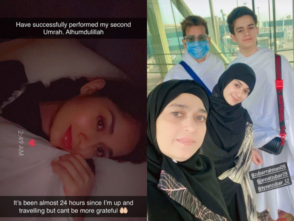 Jannat had previously performed her first Umrah with her family in December 2022. Sharing the latest update on her Instagram handle, she posted glimpses of her pilgrimage, including photos from her flight.