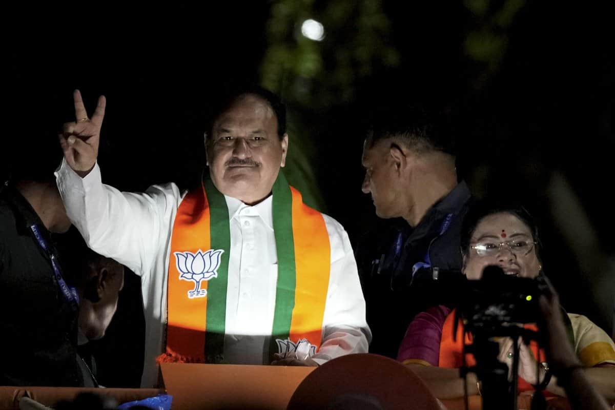 Kolkata: BJP National President JP Nadda waves to supporters during an election roadshow in support of the partys candidate from Kolkata South constituency Debasree Chaudhuri ahead of the seventh phase of Lok Sabha polls, in Kolkata, Wednesday, May 29, 2024. (PTI Photo/Swapan Mahapatra)