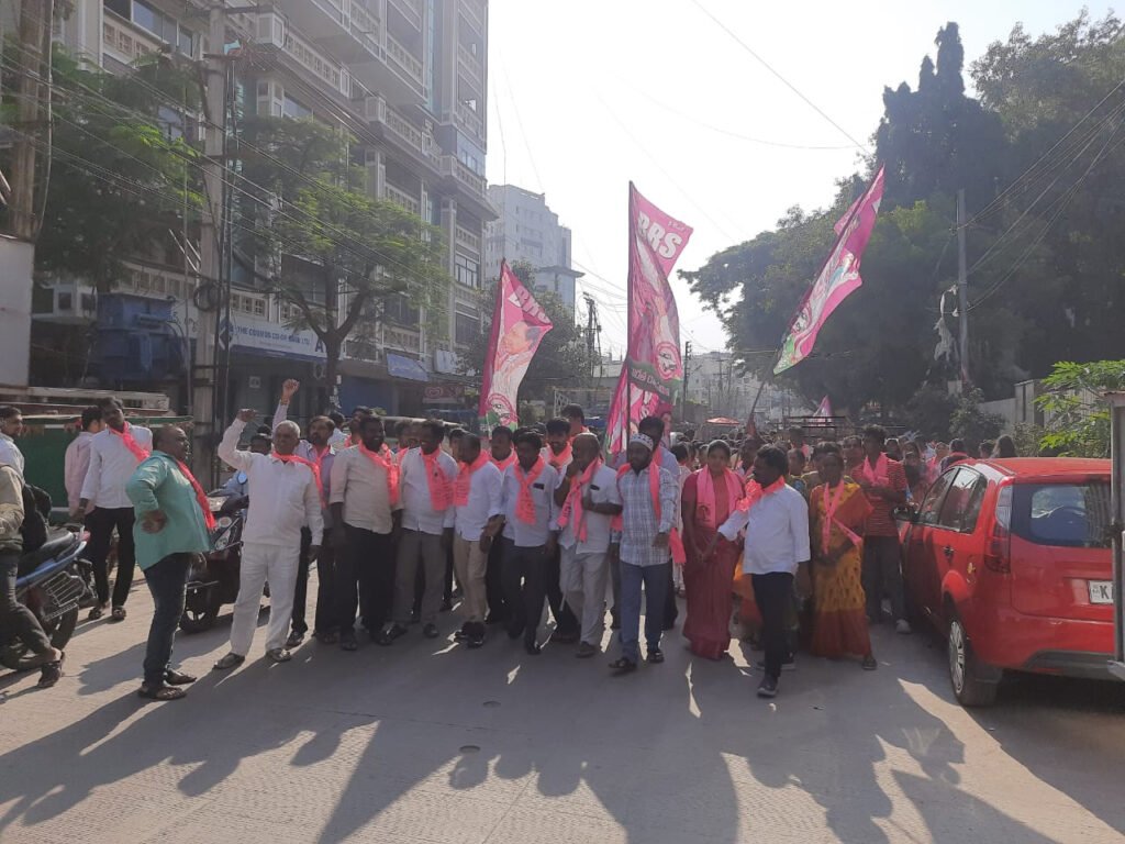 Bright pink banners with Sunita’s image adorned the party office. Many gathered to show their support. “I have come from Bhadrachalam, paddling my cycle. It took me six days to complete the journey,” said Krishna Murthy, a hardcore BRS supporter.
