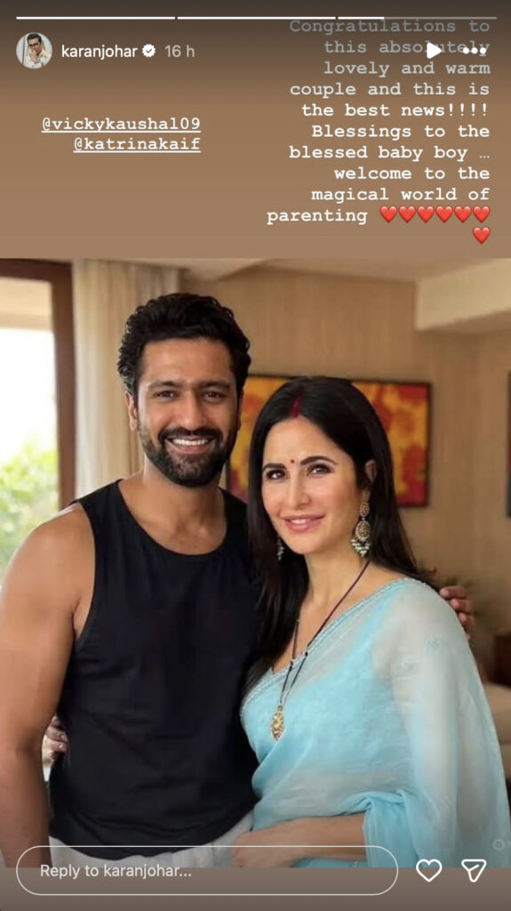 Mumbai: Filmmaker Karan Johar penned a heartfelt congratulatory message to the newest parents in the block, Katrina Kaif and Vicky Kaushal.