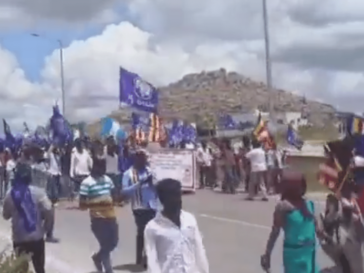Several Dalit organizations marched in protest in Kolar district of Karnataka on Monday against the Uleerahalli Village panchayat’s decision to levy a fine of Rupees 60000 on a Dalit family whose son touched a Hindu god’s idol during a procession in Koppal.