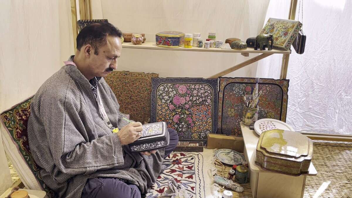 Designer Sandeep Sangaru’s curation, titled “Hands, Tools, and the Living Thread: From Kashmiri Craft Ateliers”, at the 10th Serendipity Arts Festival celebrates the traditional crafts from the valley, featuring six artisans and one designer to showcase the art of “Traam kaam” (copper craft), “Dhung chok saaz” (walnut wood carving), “Kari Kalamdani” (painting), “Shakta saaz” (papier mache), “Namda” (hand-felted wool rug), and “Kani kaam” (willow wicker).