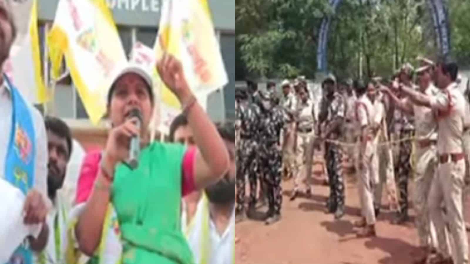 Hyderabad: Telangana Jagruthi president Kalvakuntla Kavitha was taken into custody by the police for staging a road blockade before the Revenue Divisional Office (RDO) in Vikarabad, in a protest against the land acquisition of 1,200 acre for an IT corridor in the district.