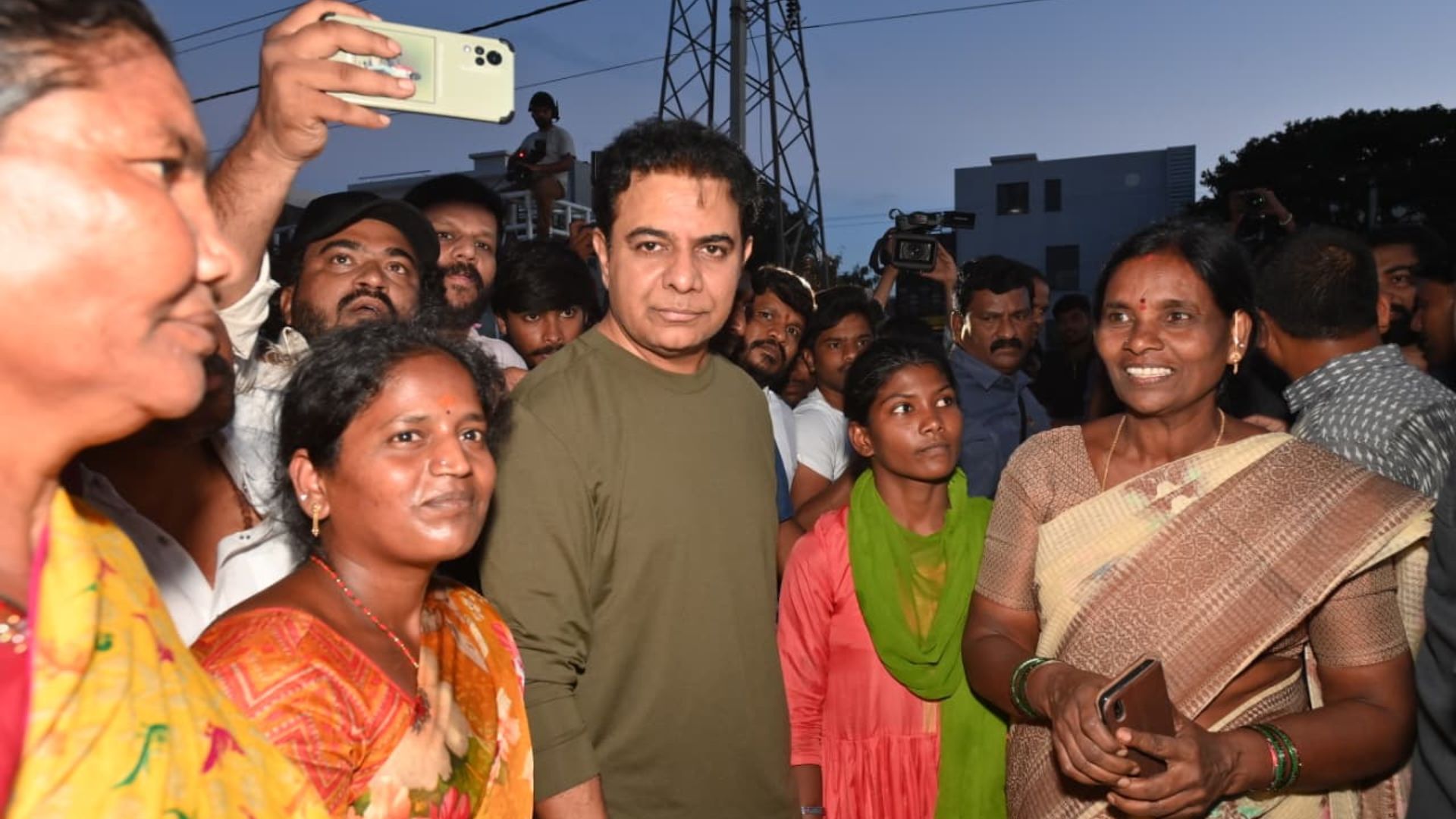 Hyderabad: Bharat Rashtra Samithi (BRS) Working President KT Rama Rao (KTR) on Monday visited the Sunnam Cheruvu area in Madhapur and interacted with residents affected by the HYDRAA demolitions.